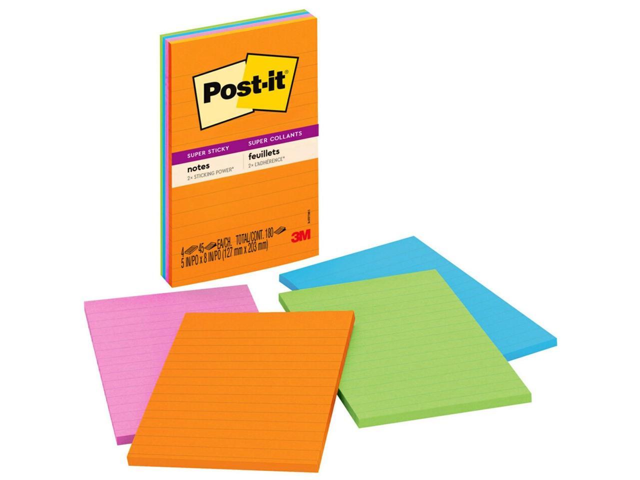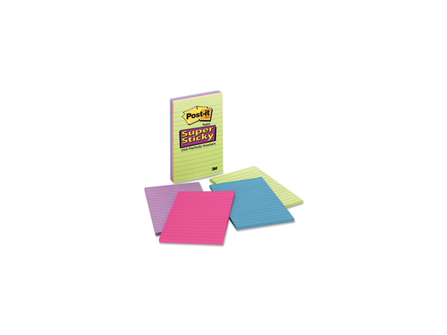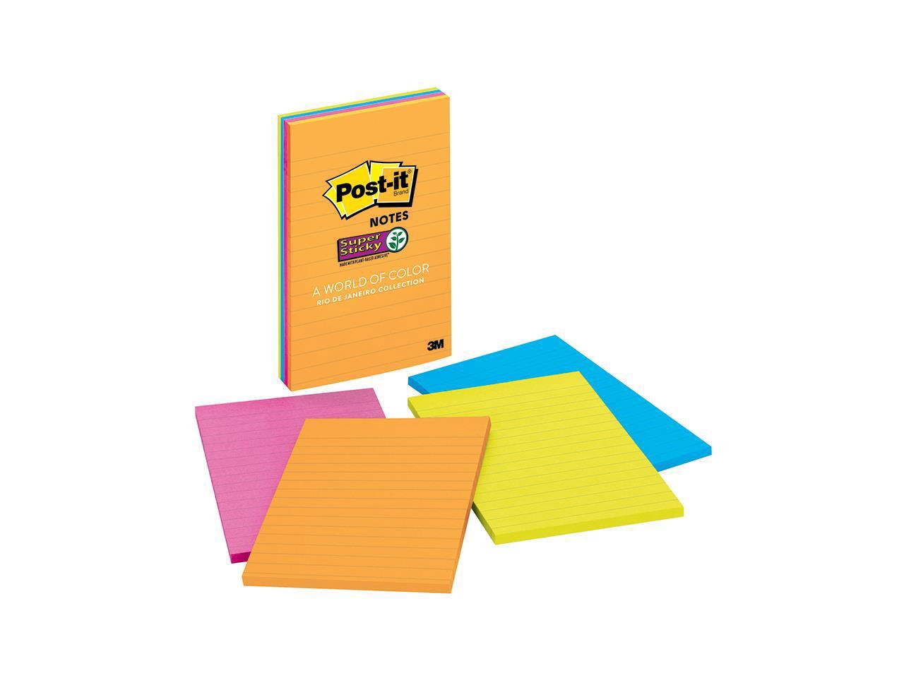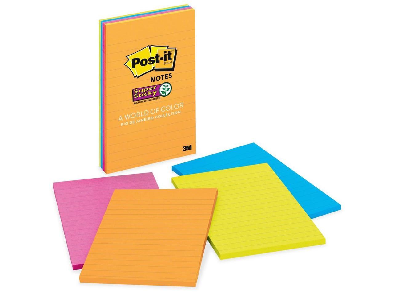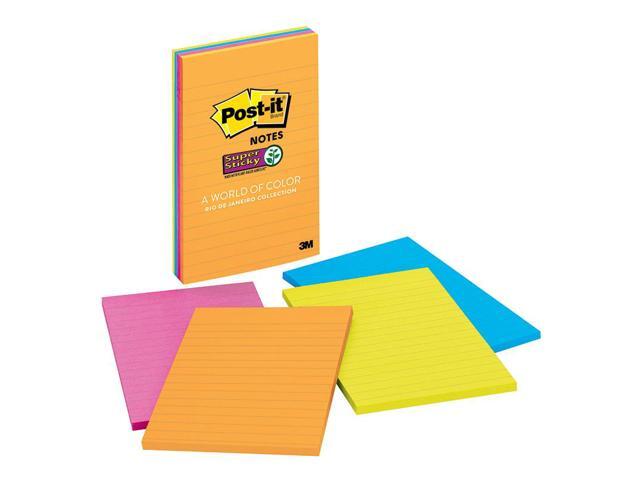 Post-it 4621SSAU Super Sticky Rio de Janeiro Lined Pads, 4" x 6" - Assorted - Paper - Self-adhesive, Repositionable - 4/Pack