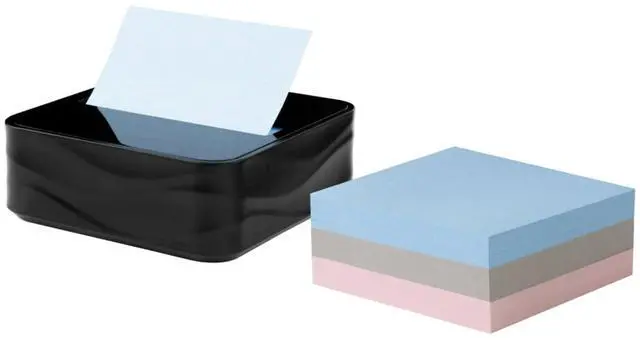 Note Dispenser, Sticky Note Holder, Black Wave Design, Includes 3 Pads of 90 Sheets of 3 in x 3 in Pop-Up Notes, Classroom or Office Supplies