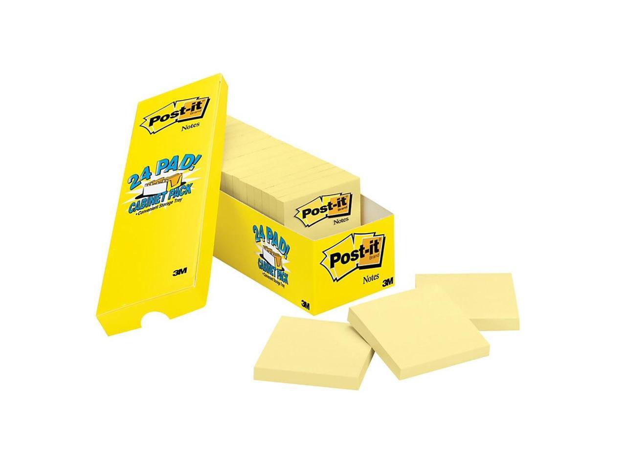Post-it Notes Cabinet Pack 3" x 3" Canary Yellow 24/Pads (654-24CP) 653423