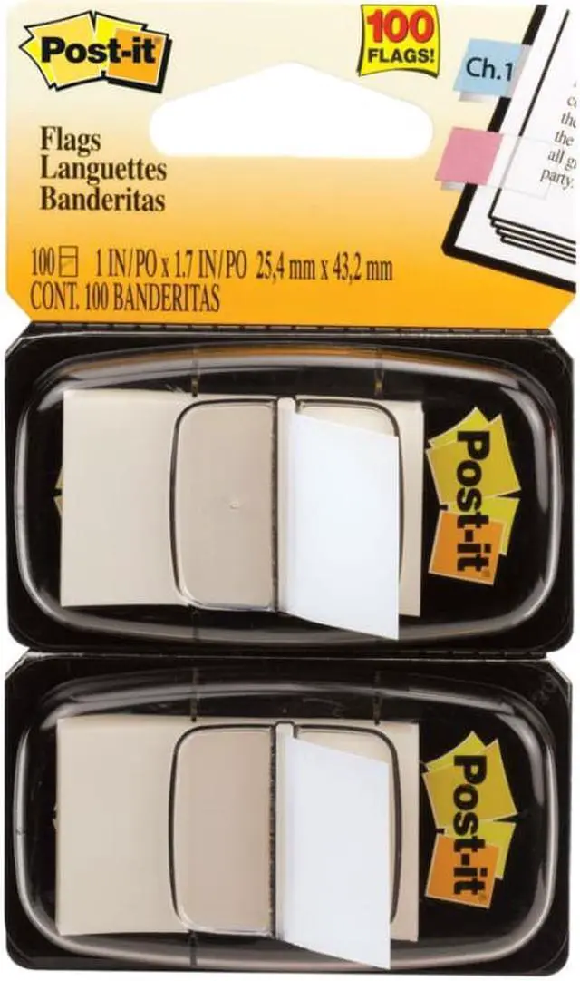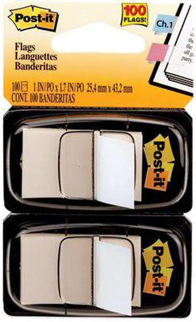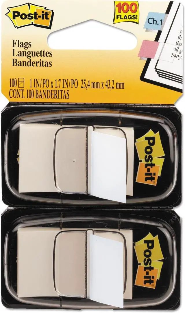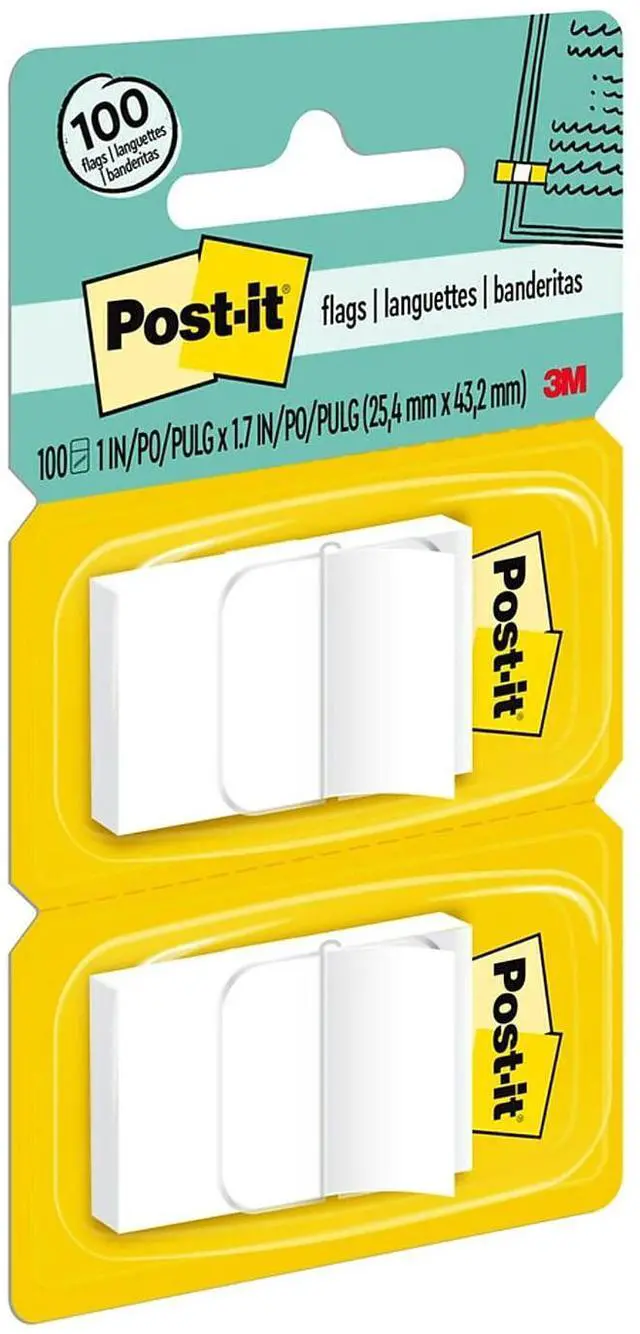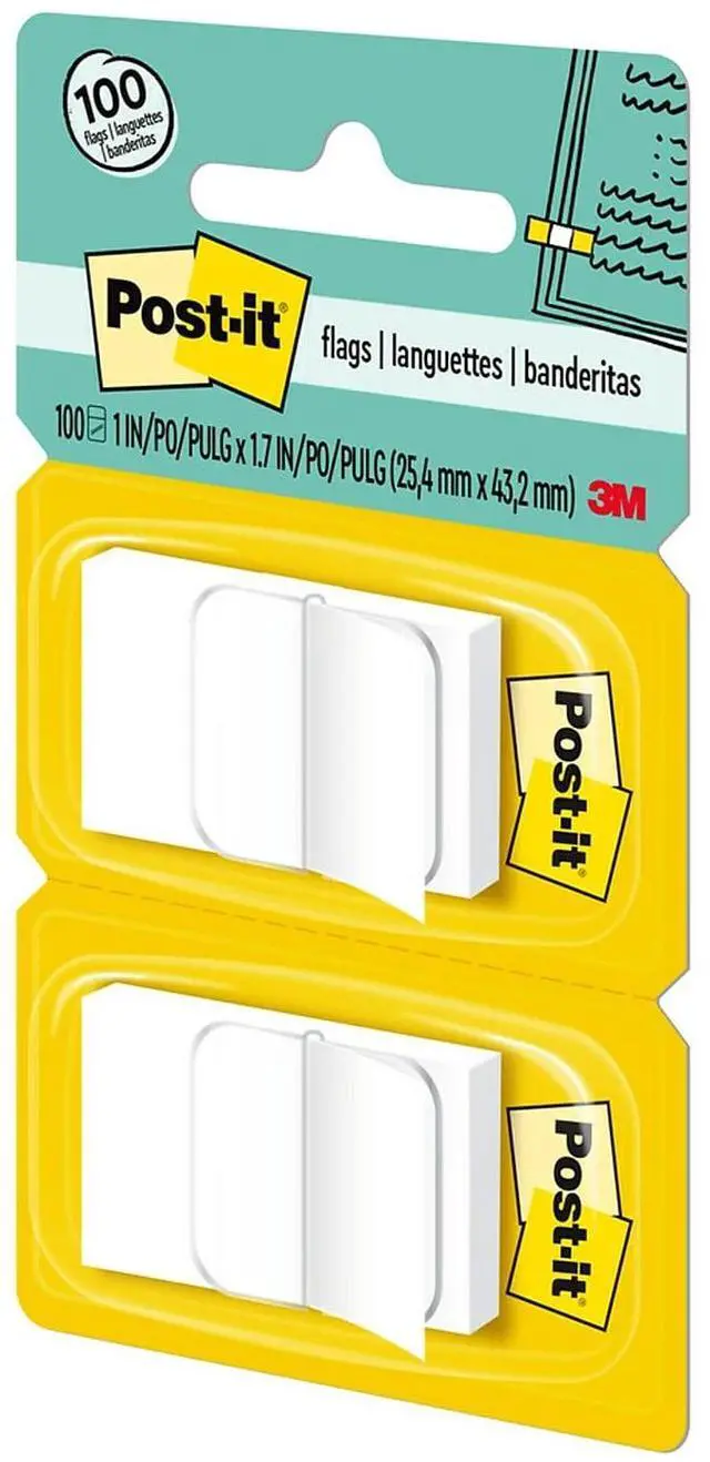 Find it fast with Post-it Flags in bright eye-catching colors that get noticed. They make it simple to mark or highlight important information in textbooks, calendars, notebooks, planners and more. They stick securely, remove cleanly and come in a wide variety of colors. Draw attention to critical items or use them to index, file or color code your work, either at home, work or in the classroom. Try with Post-it Notes for the ultimate study duo. Two-Pack. Color(s): White; Color Family: White; Dispenser: Pop-Up; Size: 1 x 1.75.
