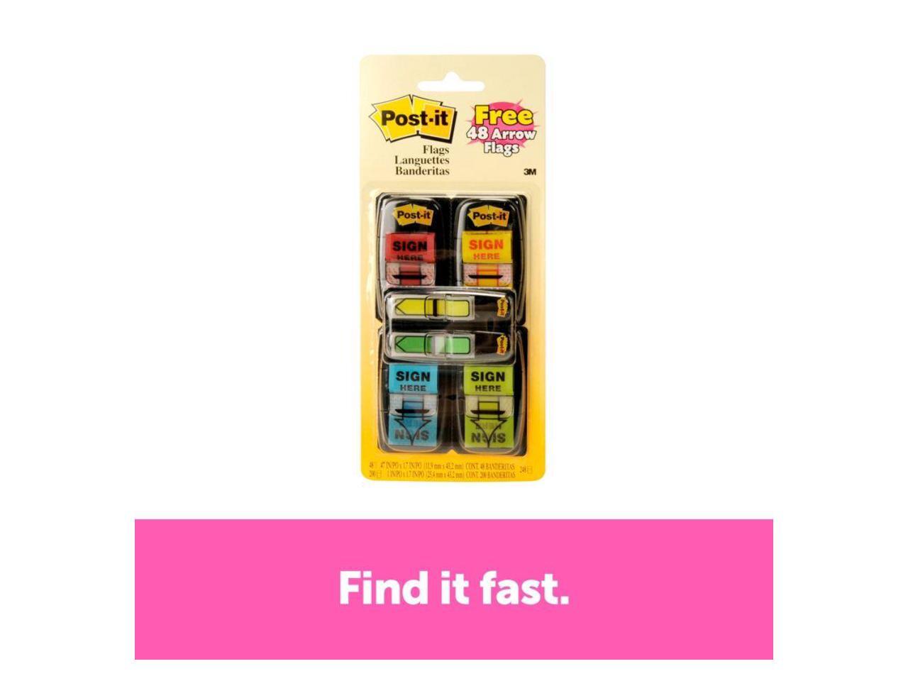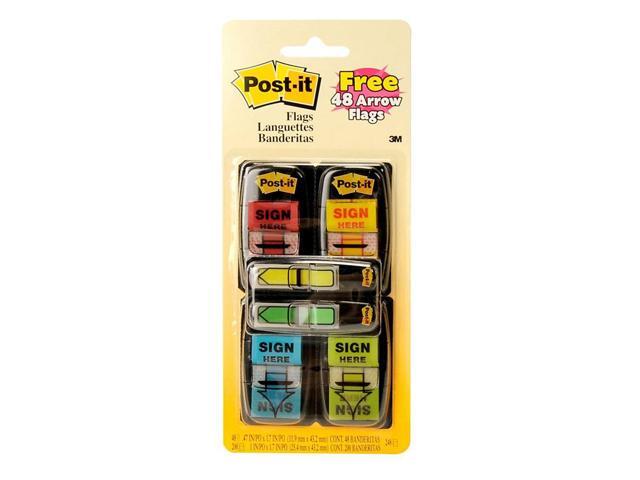 Post-it Arrow Message 1" Page Flags 200 "Sign Here" 48 Arrow Four Colors 248