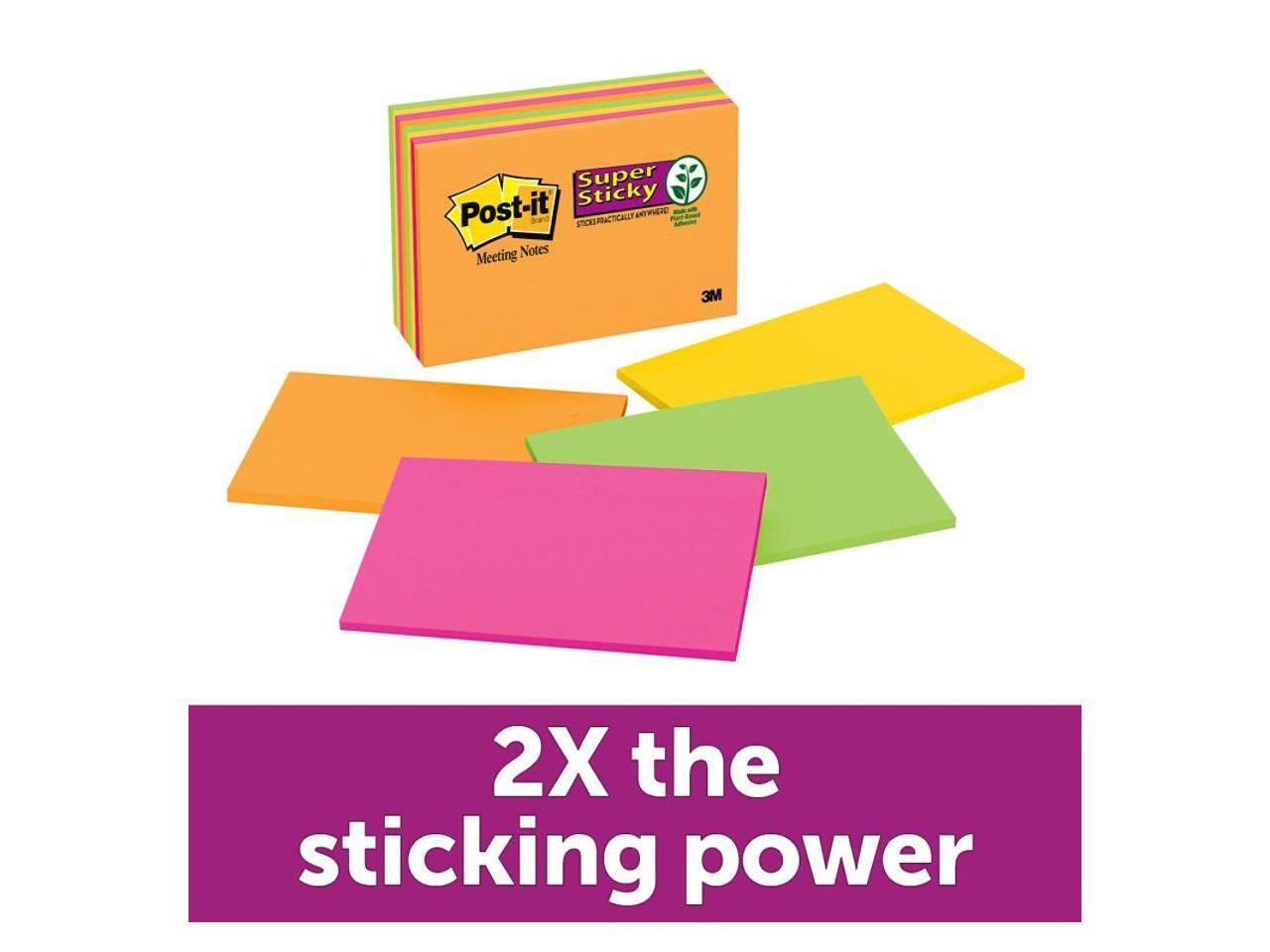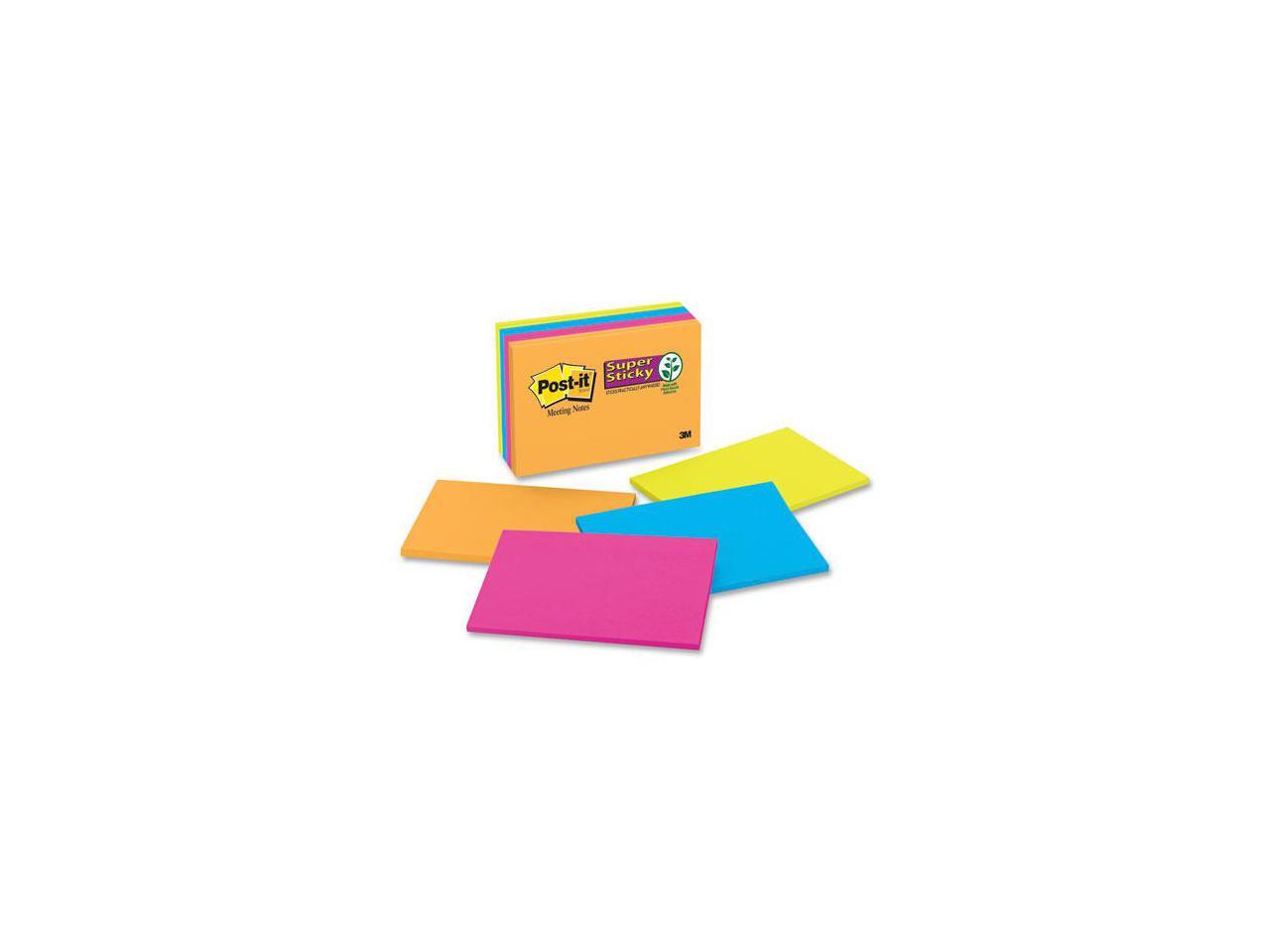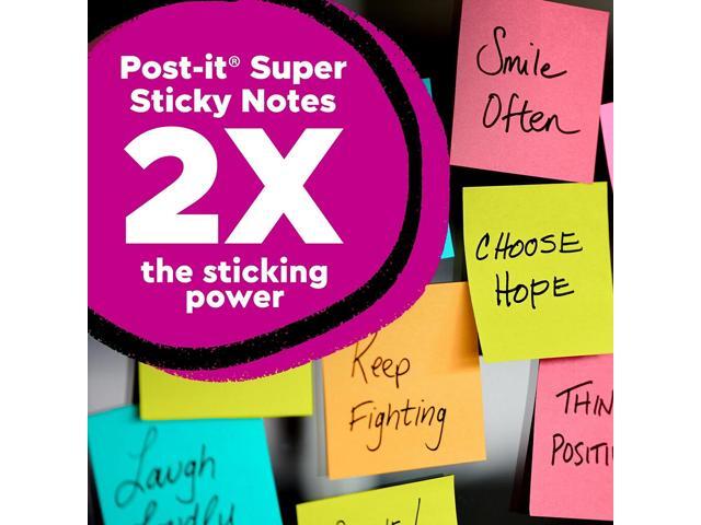 STICK AND RESTICK ANYWHERE: These notes adhere firmly to walls, windows, doors, and other vertical surfaces, allowing you to move your reminders with ease. EYE-CATCHING COLORS: Vibrant and colorful reminders are more likely to grab attention and be noticed. SUSTAINABILITY: Post-it Super Sticky Notes can be recycled.