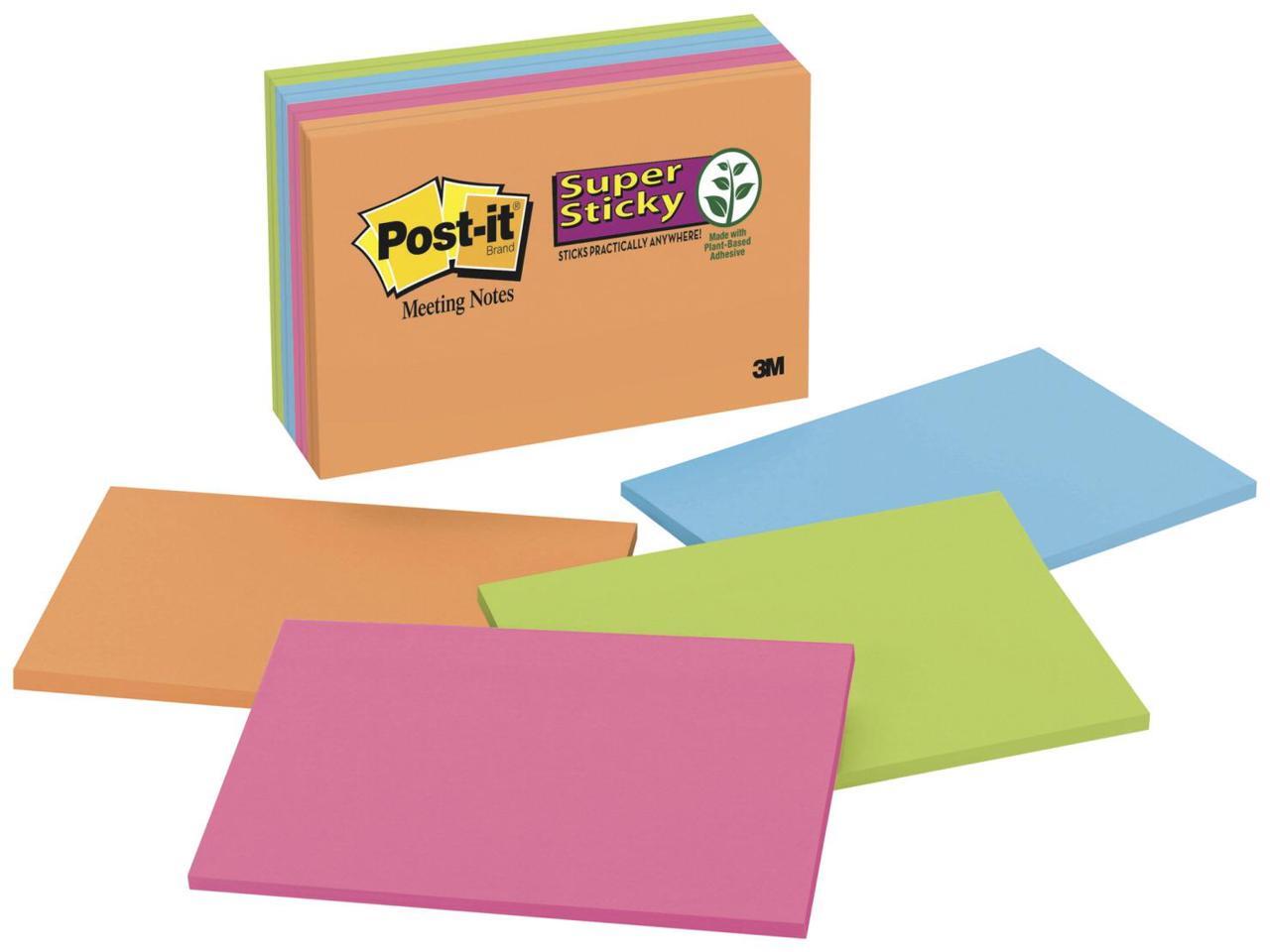 Post-it Meeting Notes in Rio de Janeiro Colors 6 x 4 45-Sheet 8/Pack 6445SSP