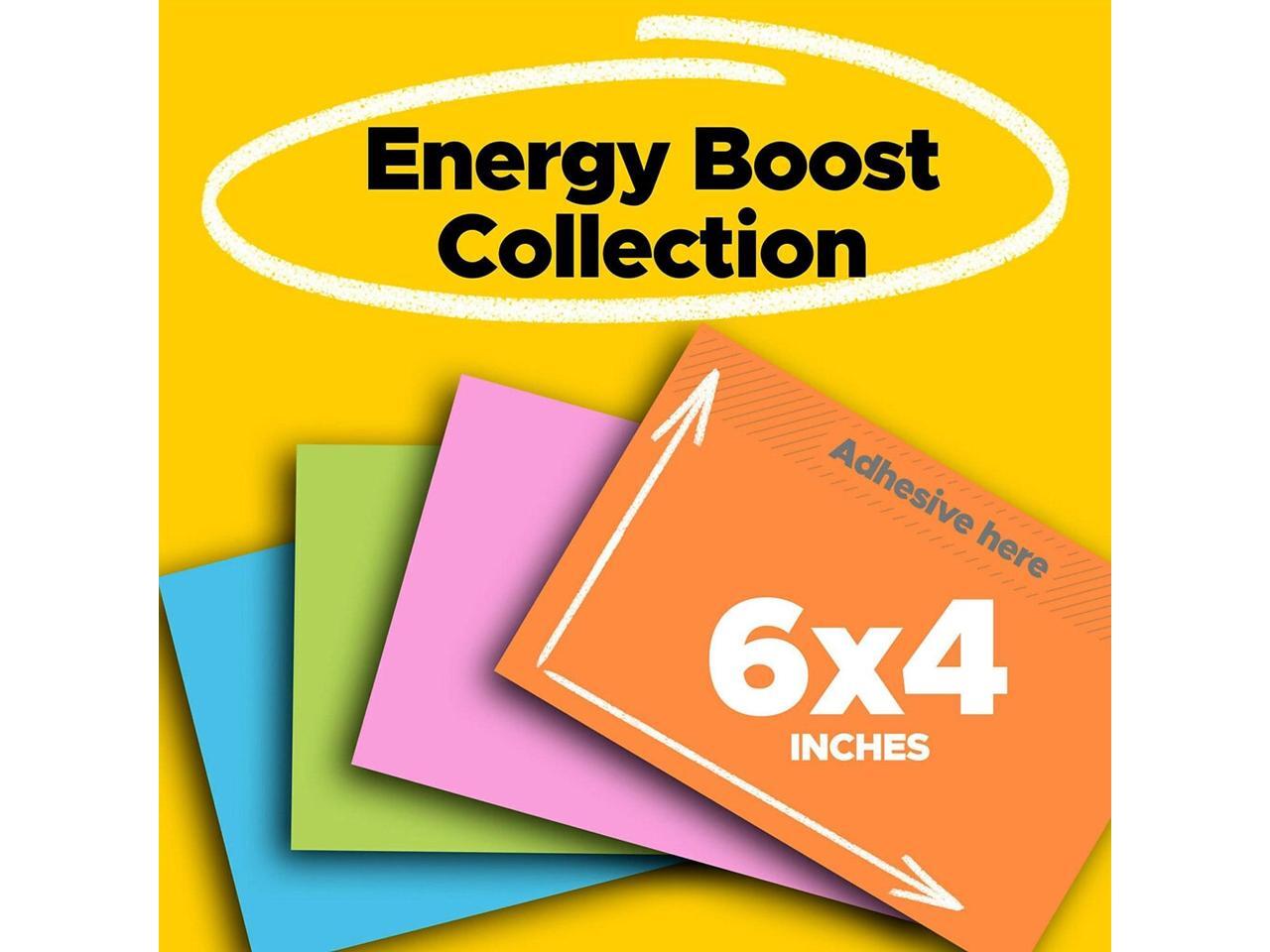 VALUE-PACKED CONVENIENCE: This pack comes with 8 pads of 6 in. x 4 in. sticky notes that are 45 sheets. INTRODUCING THE ENERGY BOOST COLLECTION: Uplift your spirits and messages via the vibrant colors of Vital Orange, Tropical Pi