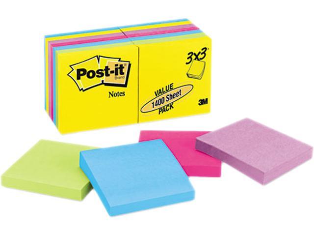 Post-it Notes 654-14AU Ultra Color Notes, 3 x 3, Five Colors, 14 100-Sheet Pads/Pack