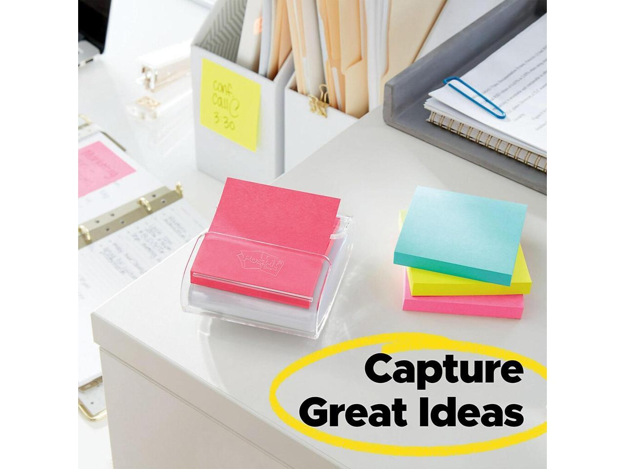 Accordion style Post-it Notes dispense easily when used with your Post-it Pop-up Note Dispenser for convenient note-taking on folders and notebooks.