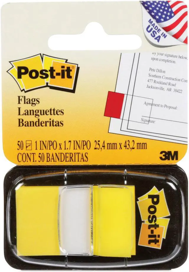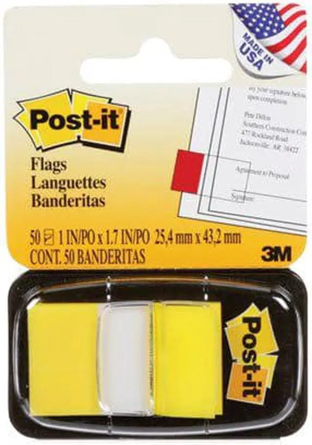 Find it fast with Post-it Flags. They make it simple to mark, flag or highlight important information. They stick securely, remove cleanly and come in a wide variety of colors. Draw attention to critical items or use them to index, file or color code your work, either at home, work or in the classroom. Color(s): Canary Yellow; Color Family: Yellow; Dispenser: Pop-Up; Size: 1 x 1.7.