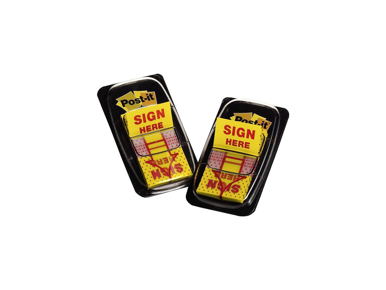Post-it 680-SH2 Message Flags, "Sign Here", Yellow, 1 in Wide, 50/Dispenser, 2/Pack