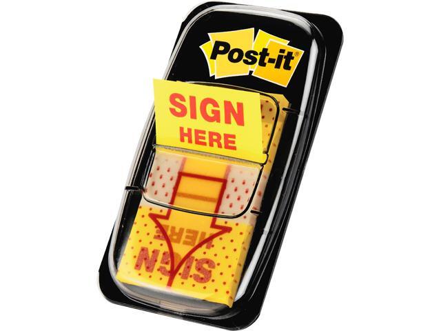 Post-it 680-SH12 Message Flags Value Pack, "Sign Here", Yellow, 1 in, 50/Disp, 12/Pack