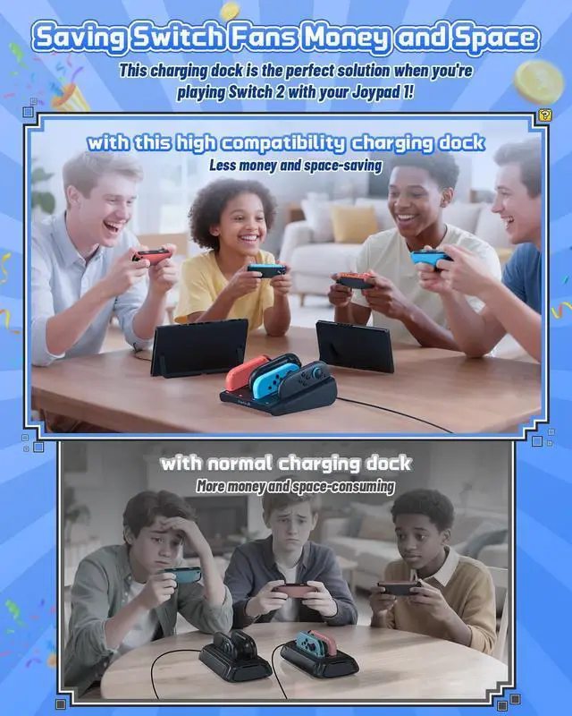 ![Alt view image 4 of 7 - [Switch 1/2 Compatible] FASTSNAIL 8-in-1 Charging Dock for Nintendo Switch 2 & 1/OLED for Joy-Con 2, Dual-Direction Magnetic Fast Controller Charger Station Stand for Joycon 2/Joycon 1 (Black)](https://c1.neweggimages.com/productimage/nb640/C5AVD2604230TGI1D1E.jpg)