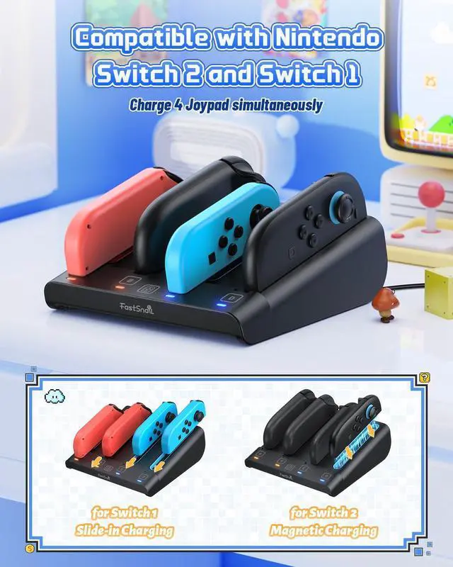 ![Main image of [Switch 1/2 Compatible] FASTSNAIL 8-in-1 Charging Dock for Nintendo Switch 2 & 1/OLED for Joy-Con 2, Dual-Direction Magnetic Fast Controller Charger Station Stand for Joycon 2/Joycon 1 (Black)](https://c1.neweggimages.com/productimage/nb640/C5AVD2604230TGHQX32.jpg)