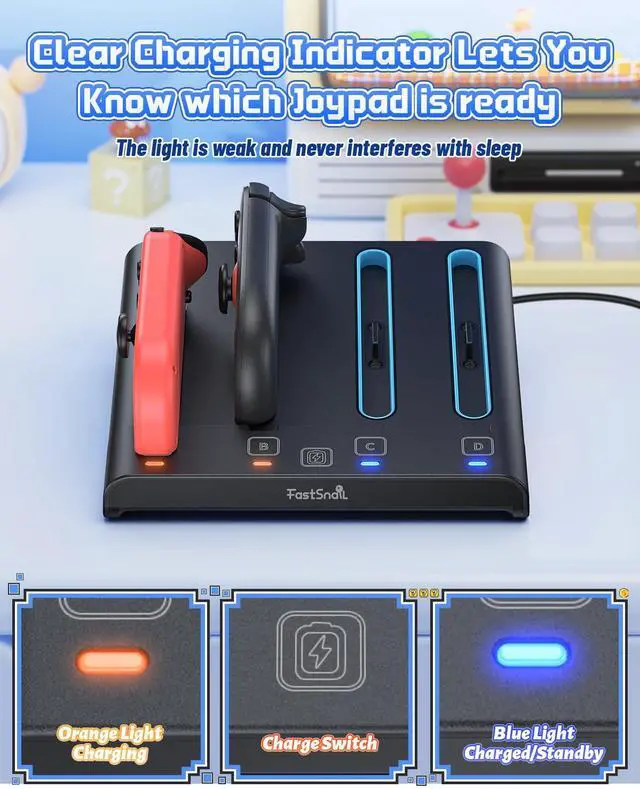 ![Alt view image 6 of 7 - [Switch 1/2 Compatible] FASTSNAIL 8-in-1 Charging Dock for Nintendo Switch 2 & 1/OLED for Joy-Con 2, Dual-Direction Magnetic Fast Controller Charger Station Stand for Joycon 2/Joycon 1 (Black)](https://c1.neweggimages.com/productimage/nb640/C5AVD2604230TGHZVD5.jpg)