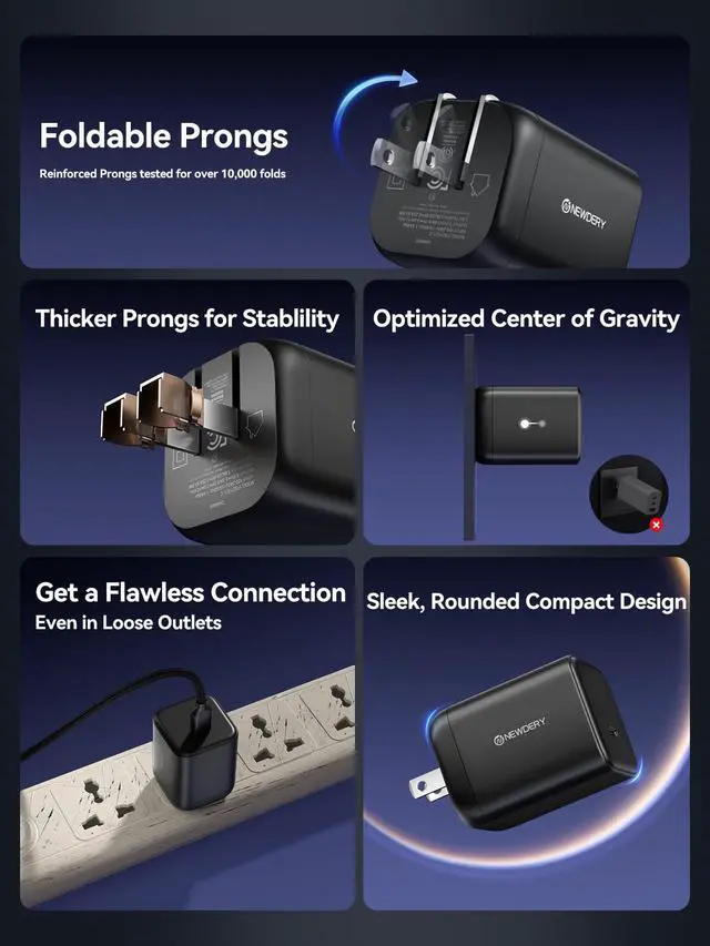 [Advanced Safety & Reliable Design] Engineered for daily use. Our IntelliGuard system and Multi-Protect features guard against overheating and short-circuits. It also features reinforced foldable prongs for a flawless connection, making it a dependable wall charger built to last.