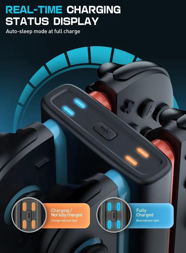 [Magnetic Design]:The magnetic design makes Joy Con charging more convenient, allowing for easy alignment and secure placement of the controllers. This improves charging efficiency while reducing wear and tear, thus extending the lifespan of the charging ports.