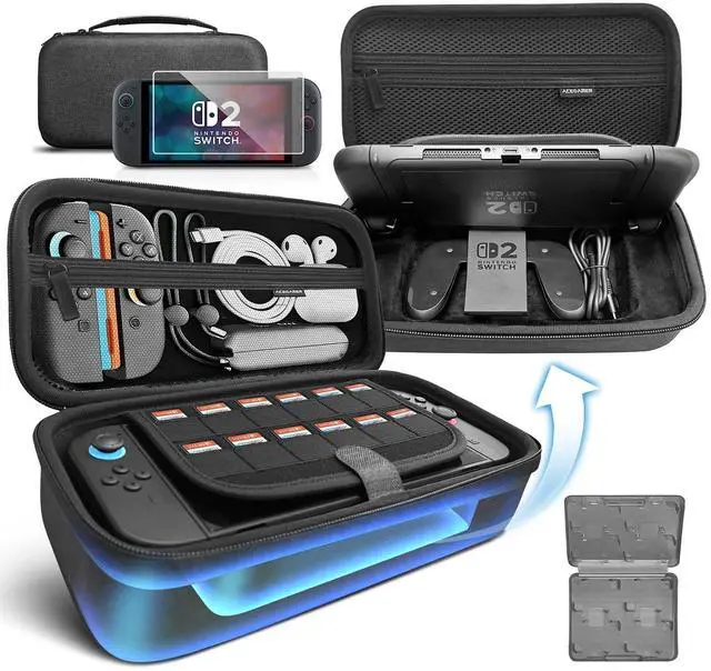 Perfect Fit for Switch 2 (2025) | Complete Set Included Compatible with Switch 2 console & Joy-Cons (not for older models). Set includes: hard shell case*1, 9H tempered glass screen protector *1, 8-slot game card holder*1. All-in-one storage for hassle-free travel.