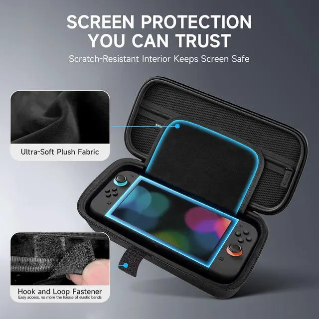 Scratch-Free Interior ProtectionThe inner compartment features a snag-free nylon zipper head and soft mesh fabric to ensure zero scratches on your screen and Joy-Pads. All your small accessories are kept securely in place.