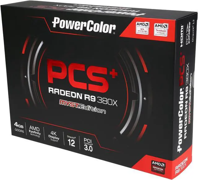 The AMD Radeon R9 380X video card is built for you to game at maximum details in 1080p, 1440p, and all the way to 4K resolution. Based on the latest generation of AMD GCN architecture, this card features 2048 Stream Processors and 4GB 256-bit GDDR5 memory, delivering new levels of performance and capability craved by serious gamers. A rich array of AMD GPU technologies is included, offering more than one way to elevate your gaming experience, like AMD FreeSync Technology for smooth, tear-free gaming, Frame Rate Target Control (FRTC) for less power consumption by limiting the target frame rate, and Virtual Super Resolution (VSR) that delivers brilliant 4K experience, even on a 1080p display.