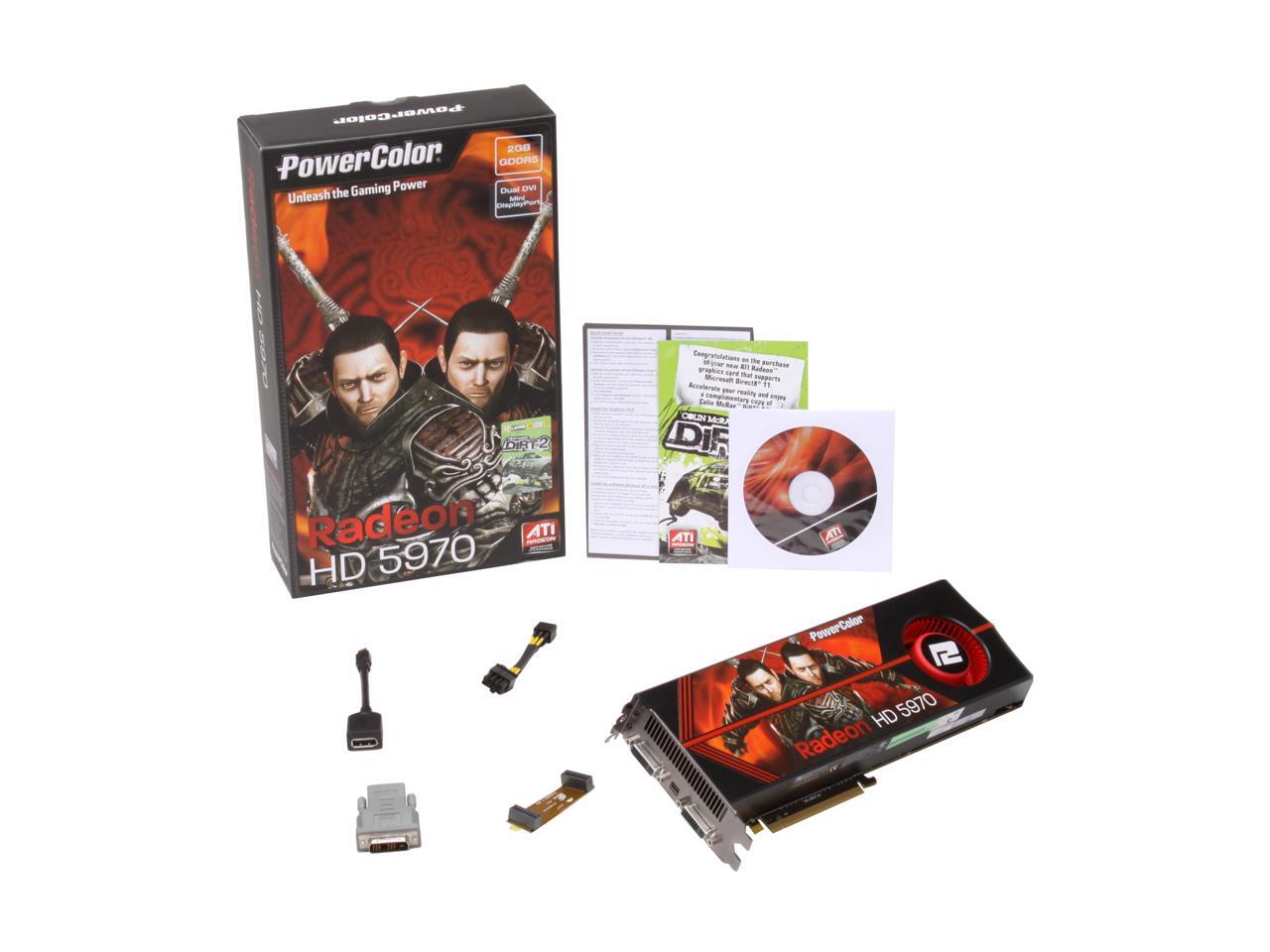 PowerColor Radeon HD 5970 (Hemlock) DirectX 11 AX5970 2GBD5-MD 2GB 512 (256 x 2)-Bit GDDR5 PCI Express 2.1 x16 HDCP Ready CrossFireX Support Dual GPU Onboard CrossFire Video Card w/ Eyefinity