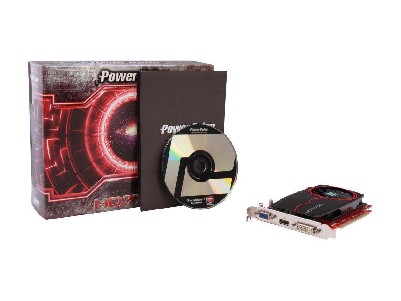 Supercharge your gaming with the great power of the PowerColor AX7750 2GBK3-H video card. This Radeon HD 7750 card is based on the cutting-edge 28nm GCN architecture, and built around 512 Stream Processors and 2GB 128-bit DDR3 memory delivering a significant performance boost in your favorite games and daily applications. AMD PowerPlay power management and AMD ZeroCore Power technology reduce the energy waste to the minimum, keeping your system cool, quiet and your wallet loaded. And packed with incredible features, such as PCI Express 3.0, AMD HD 3D, AMD App Acceleration, and gaming at resolutions beyond 5760x1080 with AMD Eyefinity technology, the Radeon HD 7750 is the world’s most advanced graphics. For everyone.