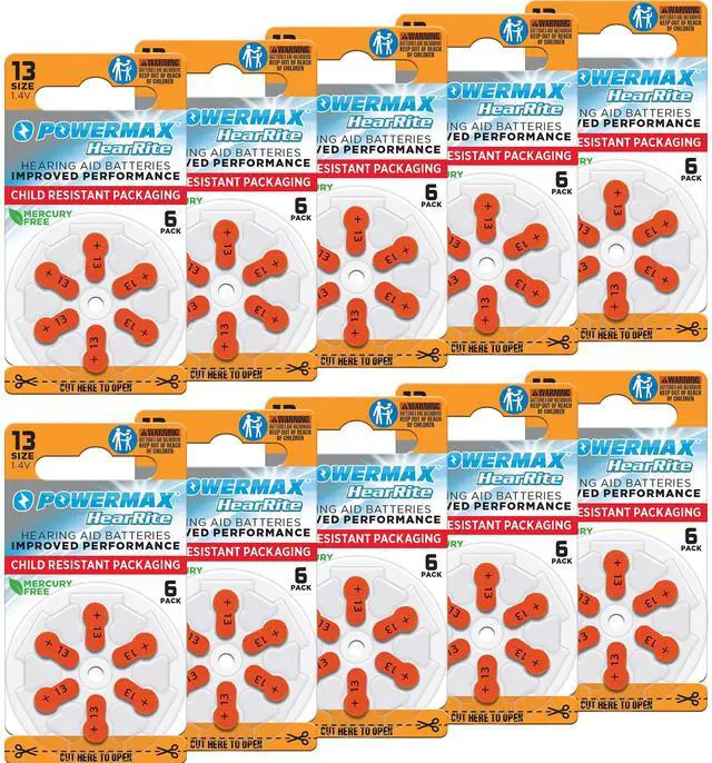 Powermax HearRite hearing aid batteries features extra long change tabs to make battery replacement easier especially for individuals with limited dexterity. Remove tab to activate the battery. Wait 1 minute to reach the battery's full power.