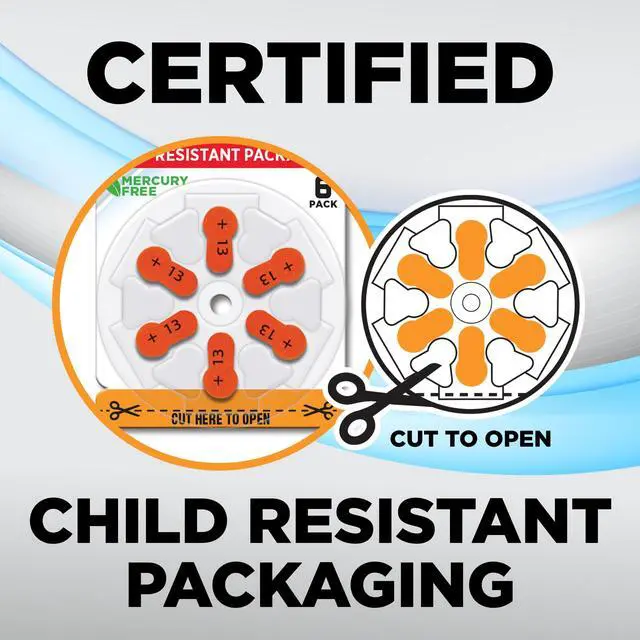 Powermax HearRite packaging is improved with child resistant packaging designed with safety features that make it difficult for young children to access the batteries inside, thereby reducing the risk of accidental ingestion or exposure.