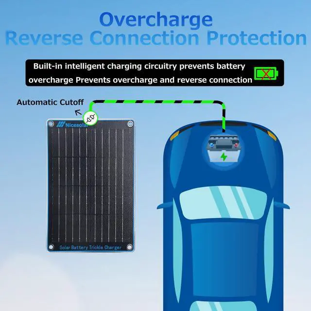 - Nicesolar solar charger maintainer and battery charger are for maintaining a 12-volt battery daily. You'd never have to worry about battery drain out anymore!