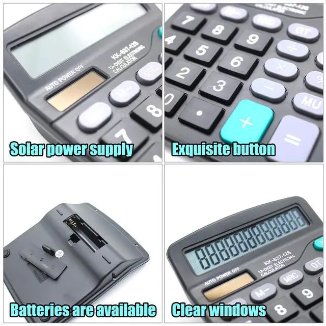 Desk Calculator, 12-Digit Solar Battery Office Calculator with Large LCD Display Big Sensitive Button, Dual Power Desktop Calculators