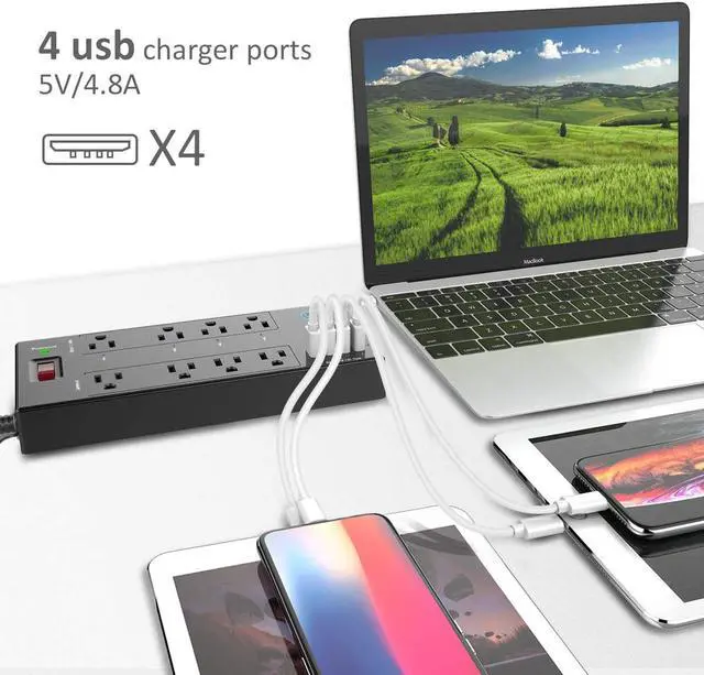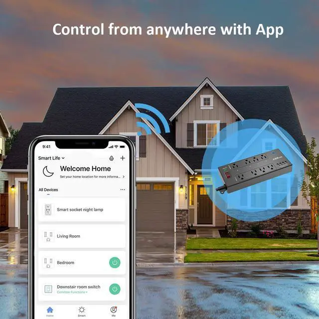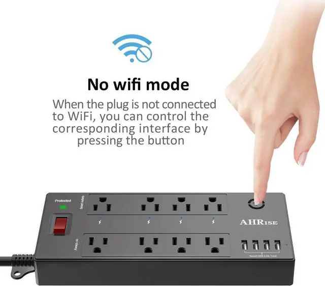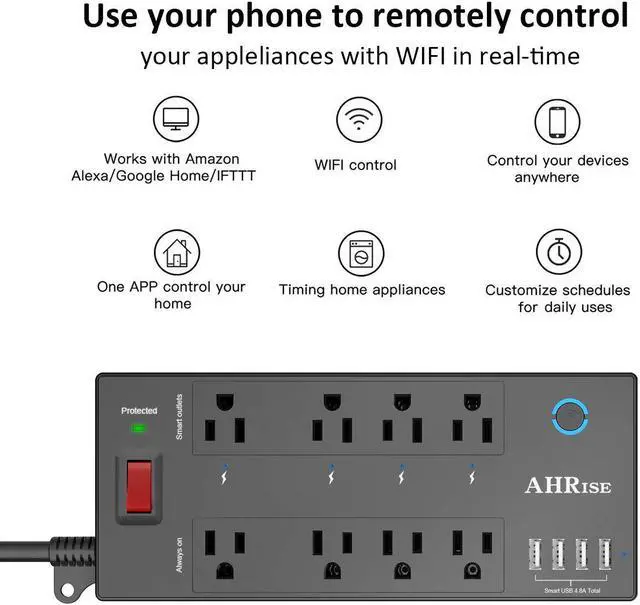 WIFI ONLY): 4 USB charging ports (5V/ 4.8A 24W), 4 smart outlets and 4 always on outlets with built-in surge protector 540 Joules, the 3 Alexa smart outlets works with Alexa Google Assistant for Voice Control, Remote Control Your Home appliances from Anywhere, NOTE: Please make sure you have 2.4G WiFi before buying, this product does not support 5G wifi network and not work with encrypted WiFi networks, or open end public networks with no password. Set Schedule & Timer with