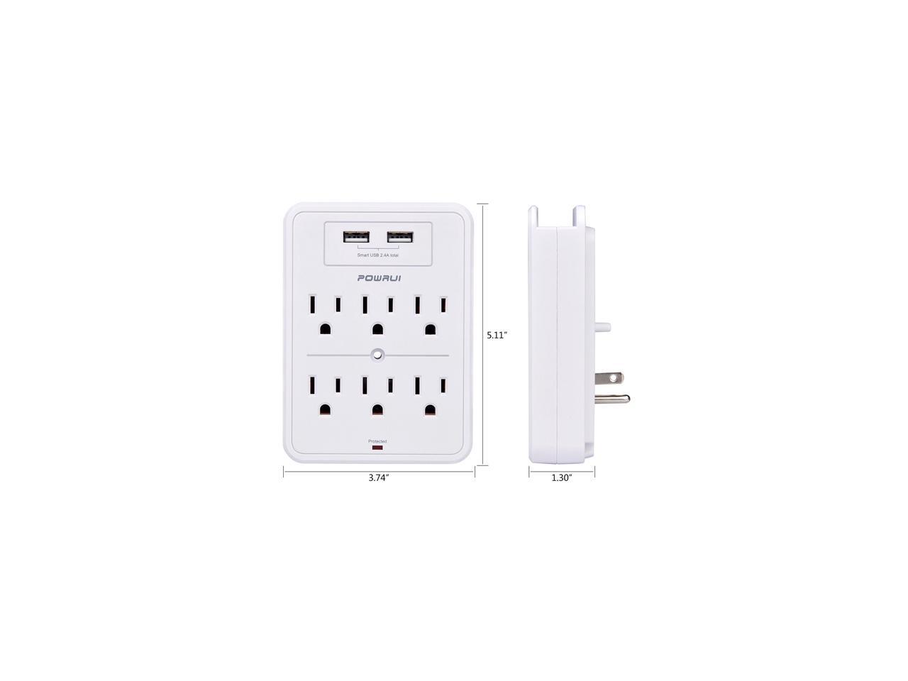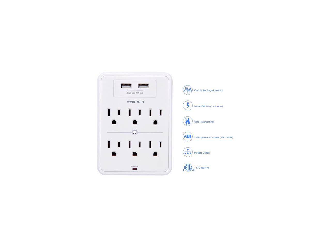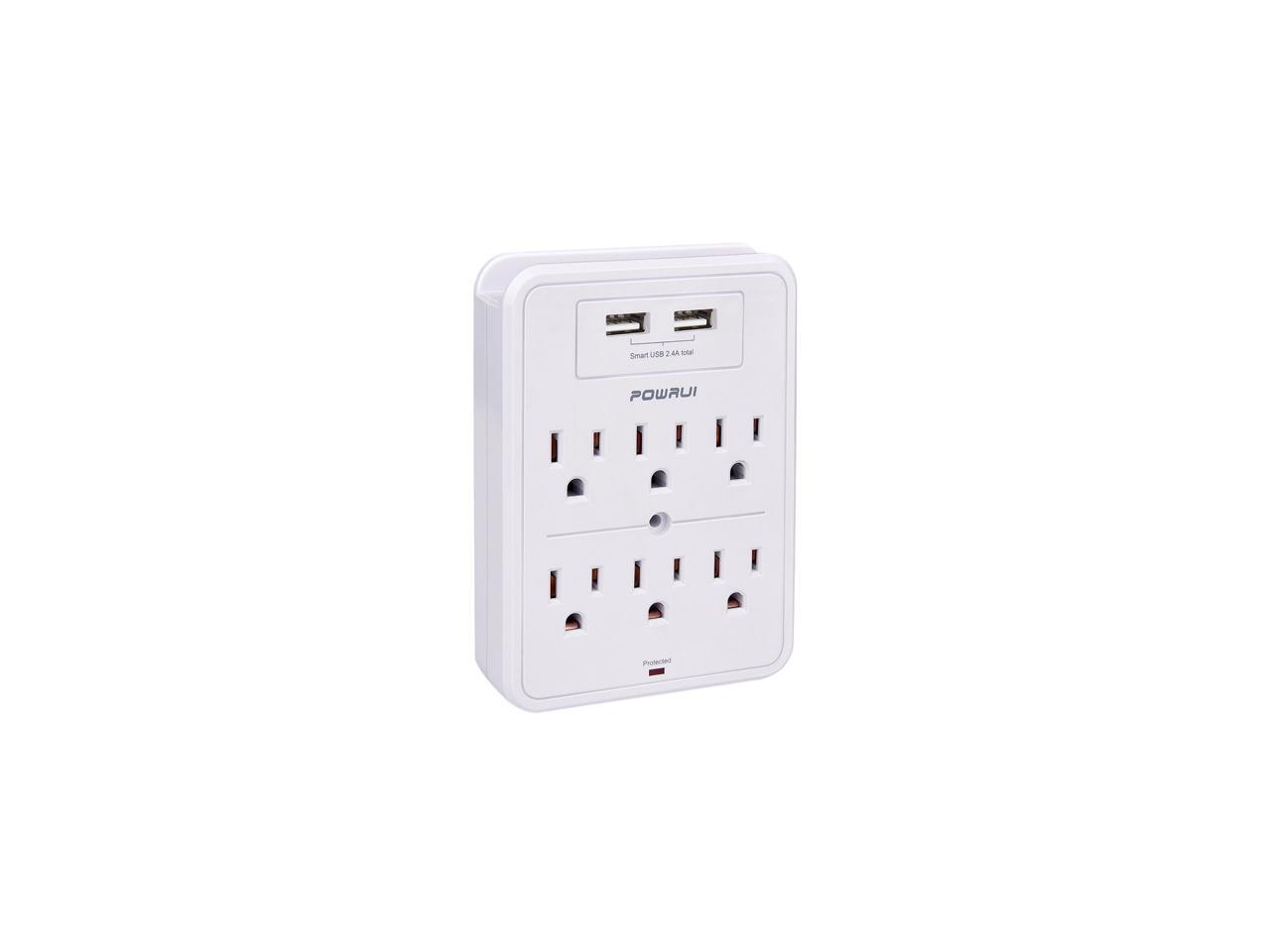 POWRUI Surge Protector, USB Wall Charger with 2 USB Charging Ports (Smart 2.4A Total), 6-Outlet Extender and Top Phone Holder for Your Cell Phone, White, ETL Listed