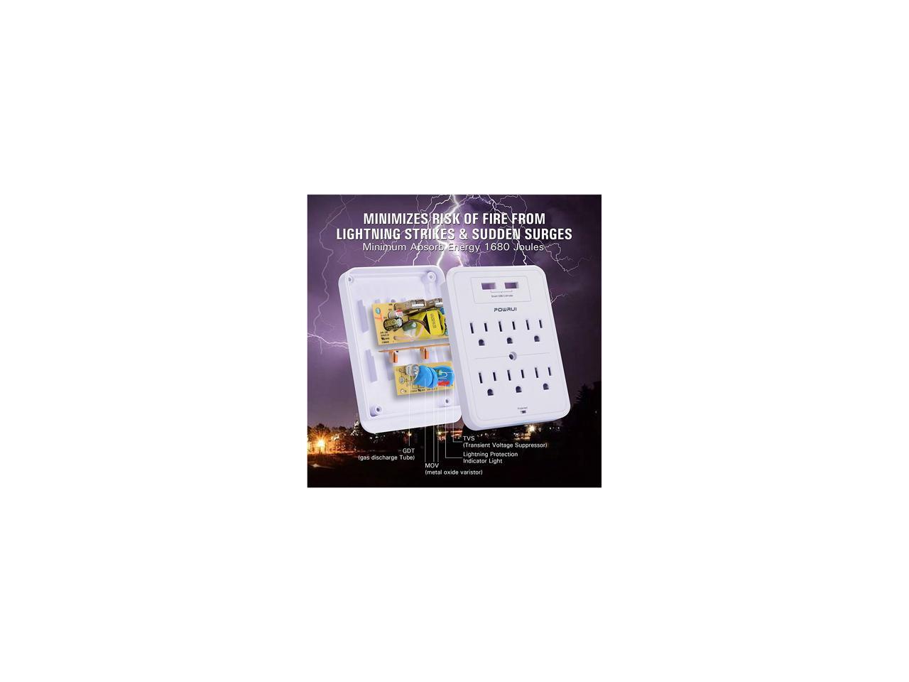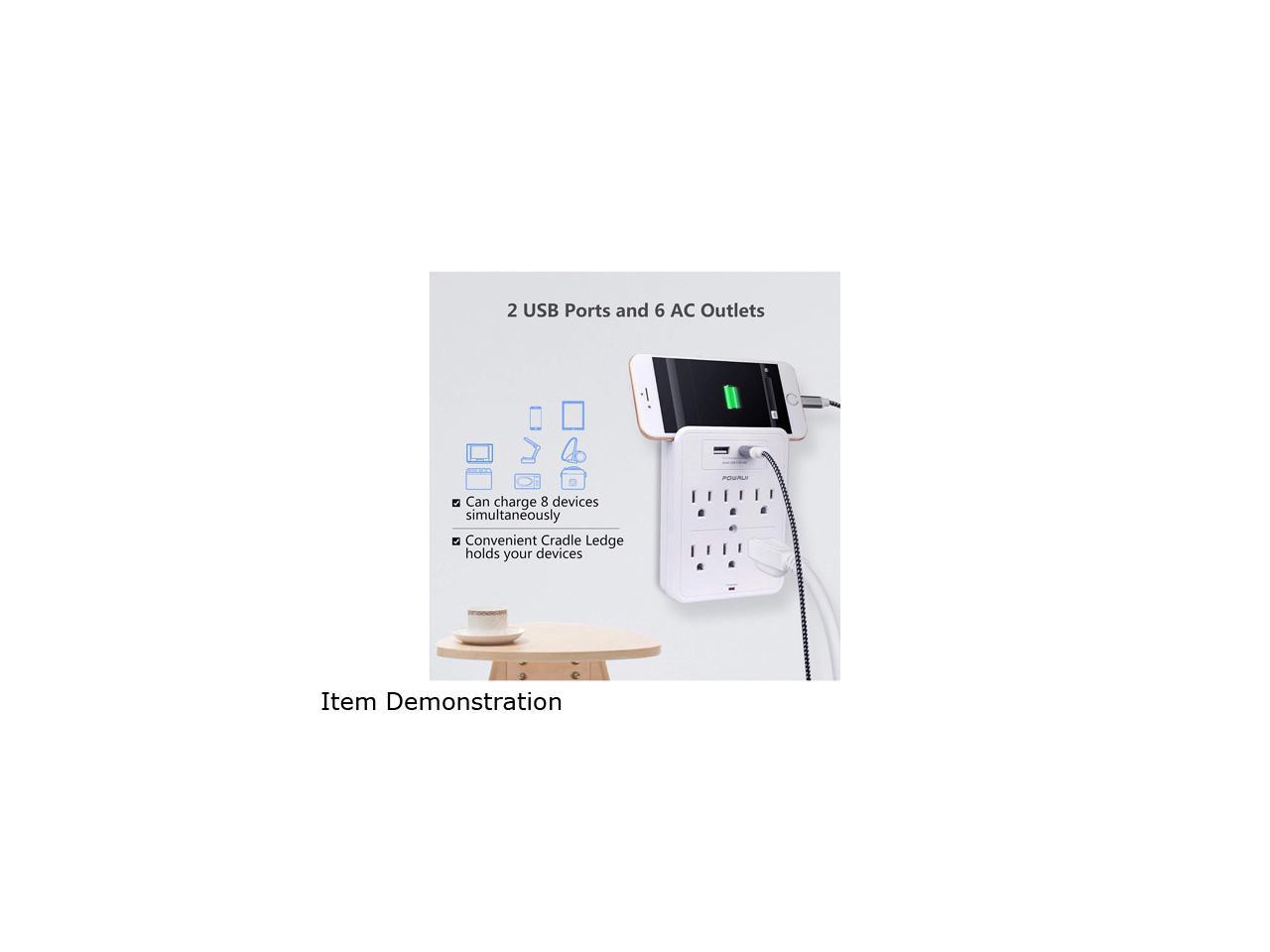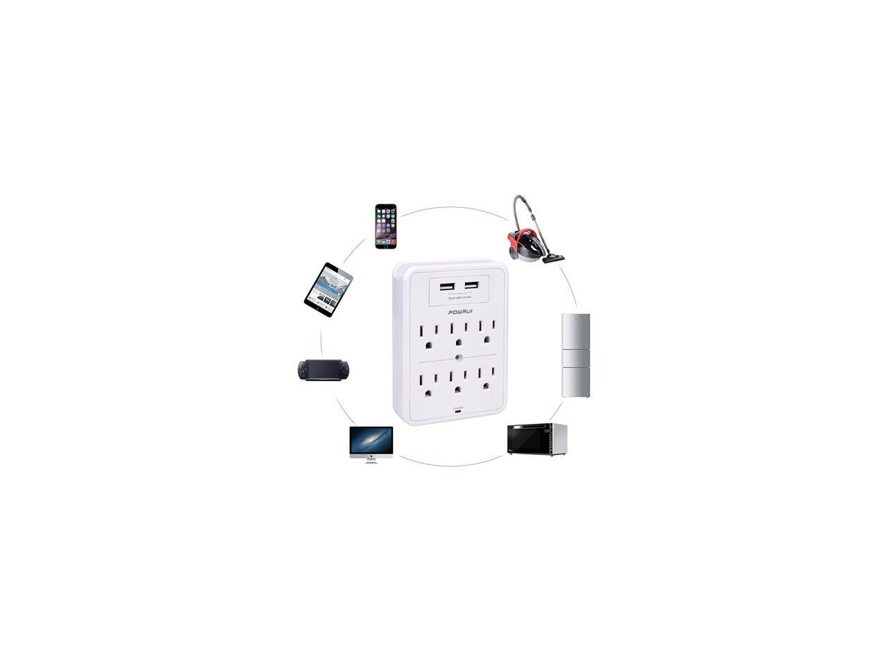 POWRUI Surge Protector, USB Wall Charger with 2 USB Charging Ports (Smart 2.4A Total), 6-Outlet Extender and Top Phone Holder for Your Cell Phone, White, ETL Listed