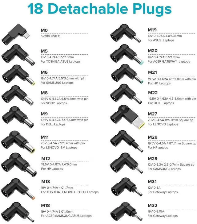 Multiple DC Tips: This set of tips can compatible most Gateway HP Dell Toshiba Lenovo Acer Asus Samsung Sony Fujitsu and other Brand laptop models which tips and voltages included.
