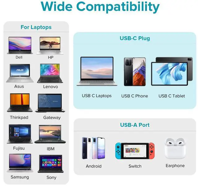 USB-C plug charhing USB-C Laptops, tablet, phones and more usb-c devices.