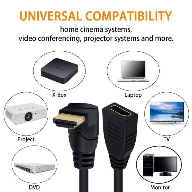 4. This HDMI Cable 8K Ultra HD makes the cable better fits for wall-mounted devices, solving the embarrassment of limited spaces between wall and device,Plug and Play.