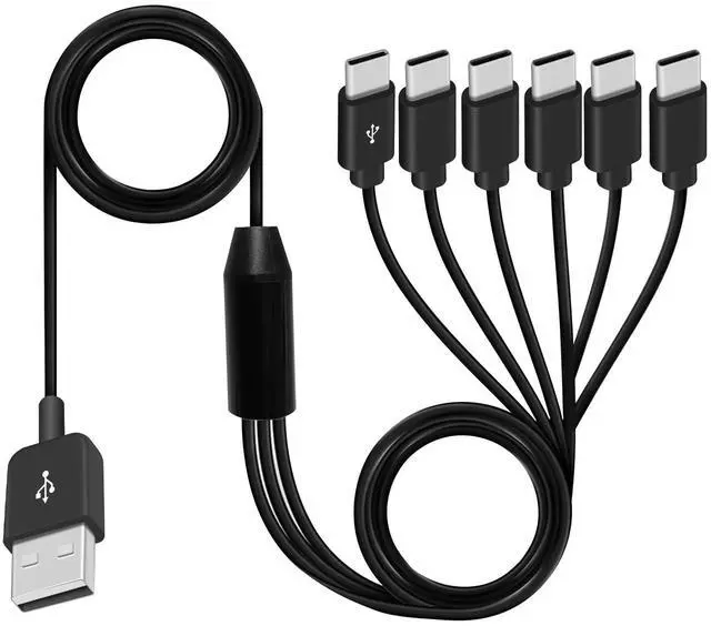 [6 in 1 USB C Charging Cable] Multi USB C charging cable has Six ports which can be fast charging, one of Marked Port which can also be support QC 3.0 charging function and data transmission. Its transmission speed can up to 480Mbps. The maximum output current of the other 5 ports also up to 3A, but can't synchronize data. [High Quality Material] this Multi USB C Splitter Cable use high quality of Aluminum alloy plug, anti-oxidation and corrosion-resistant, sensitive adaptable equipment interface charging, this usb c cable meets the corresponding standards, so you don't have to worry about the quality of the cable.