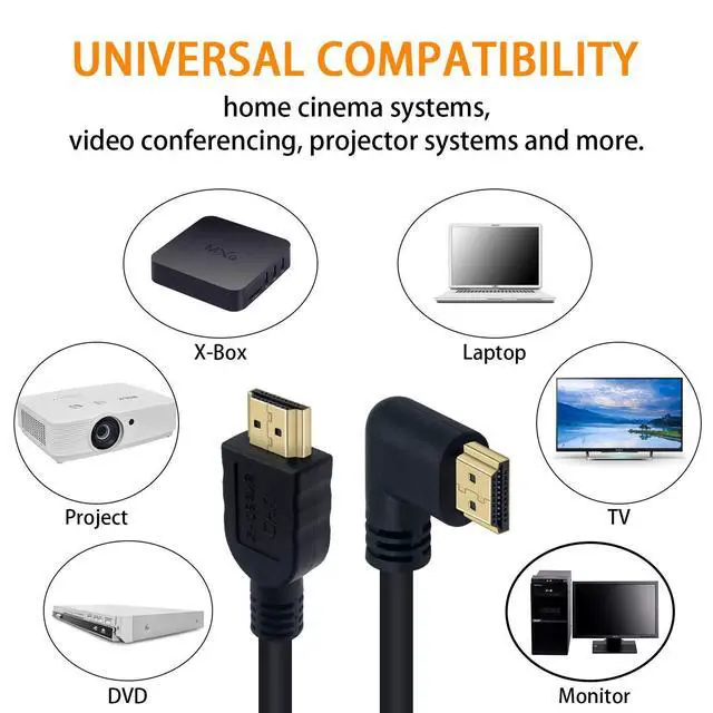 90 Degree 8K HDMI Cable Right Angle design makes the cable better fits for wall-mounted devices, solving the embarrassment of limited spaces between wall and device,Plug and Play.