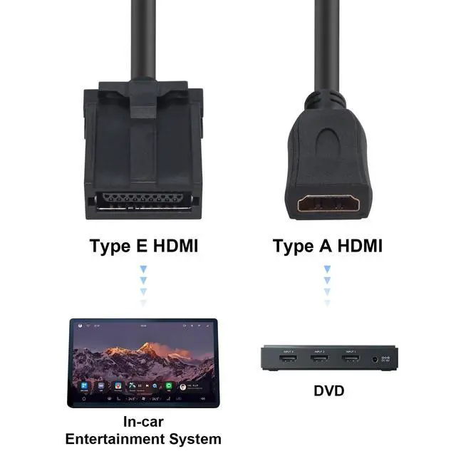 2, The HDMI Type E connector allows smartphone video streaming connection within the vehicle.