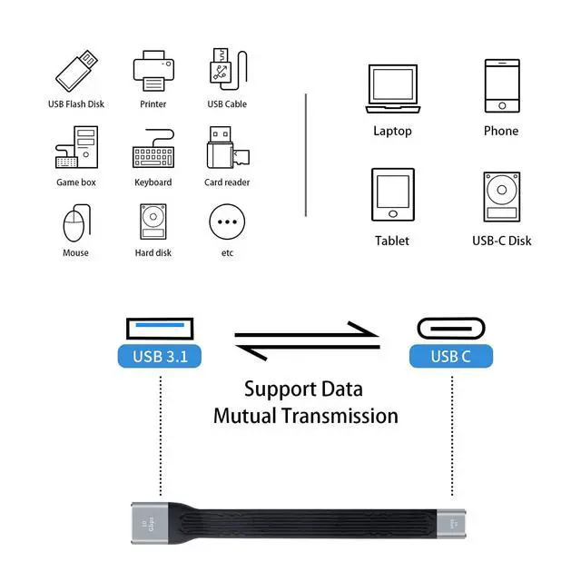 USB C to USB A adapter, use the durable soft FPC material, and it has flat design and is good for a USB C to USB Adapter cable, durable and better looking than normal cables.