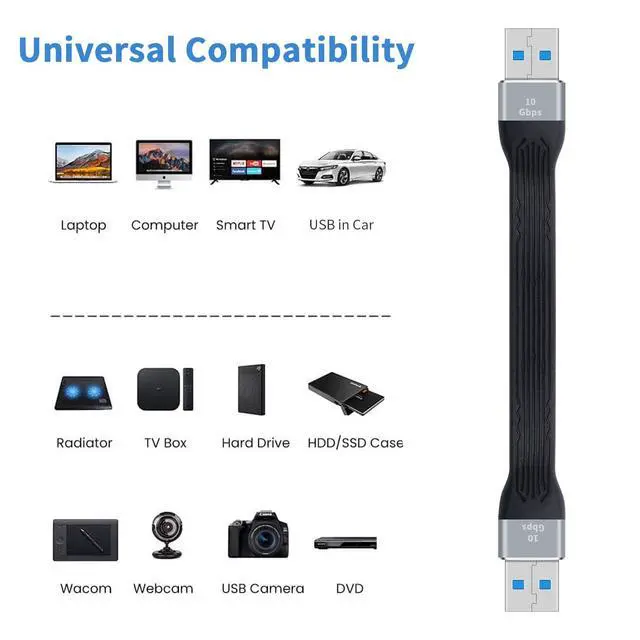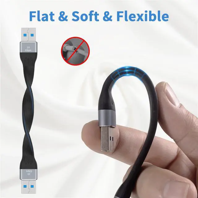 2, USB Male to USB Male Cable with durable FPC material, it is soft and flexible. It is no driver needed for the usb 3.0 a to a cable. Just plug-and-play for hard drive enclosures, printers, modems, cameras, and other USB peripherals.