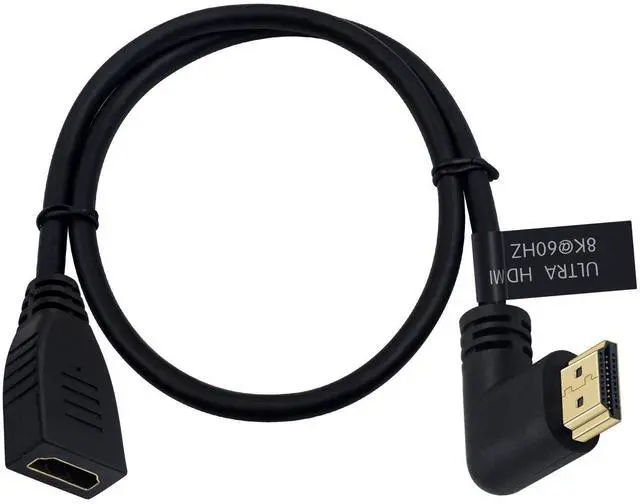 Vszerda 8K HDMI Extension Cable 2FT, 90 Degree Left Angle Male to Female HDMI 2.1 Cable, 48Gbps High Speed, with 8K@60Hz, 4K@120Hz, HDR, Compatible for Roku TV Stick, HDTV, PS5/PS4