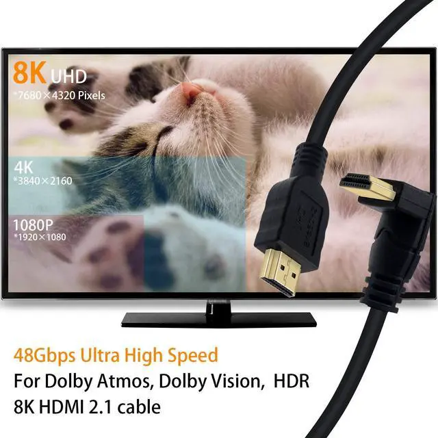 4. This HDMI Cable 8K Ultra HD makes the cable better fits for wall-mounted devices, solving the embarrassment of limited spaces between wall and device,Plug and Play.