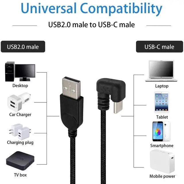 USB A to USB-C Fast Charging cable, with 360 DEGREE ANGLED USB C JACKET design, makes for better cable management in some situations, especially in tight spaces like cars,corners,etc. Also, the 360° angle plug makes a nicer fit in your hand with out breaking.