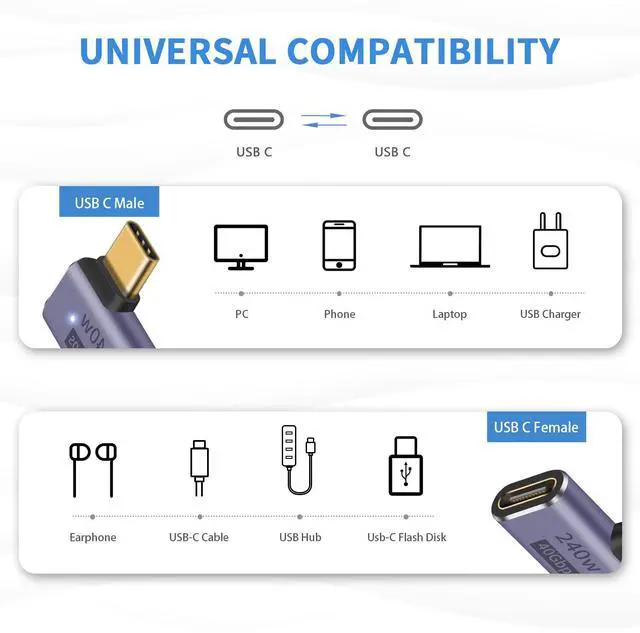 240W Power Delivery Fast Charging : This USB C Adapter can realize 5V/3A-28V/5A, 240W maximum USB power delivery, providing your device with the fastest possible charging.