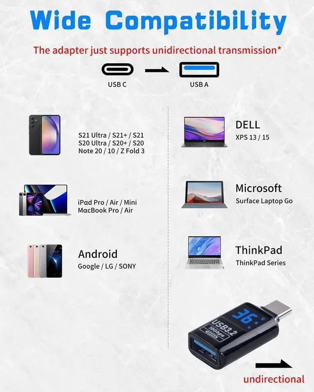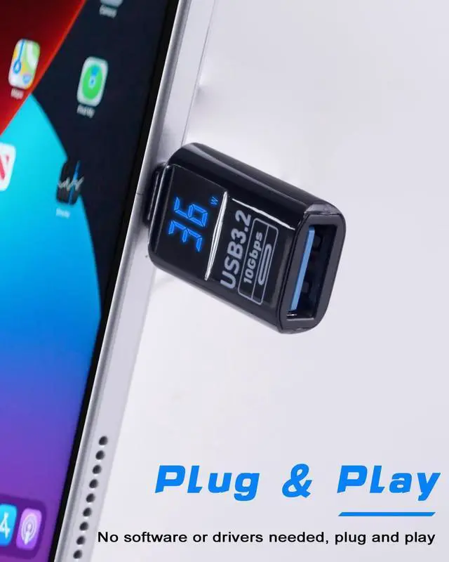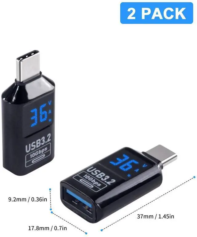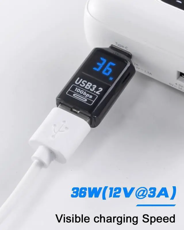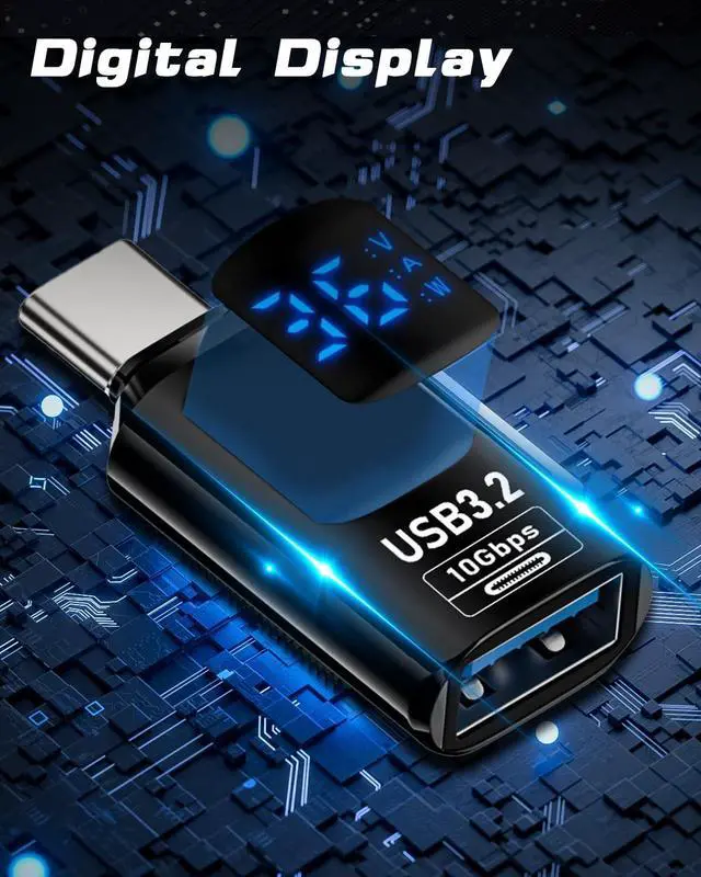 1, USB A to USB C Adapter with with an LED smart display, which is designed to display current, voltage and power supply in real time.