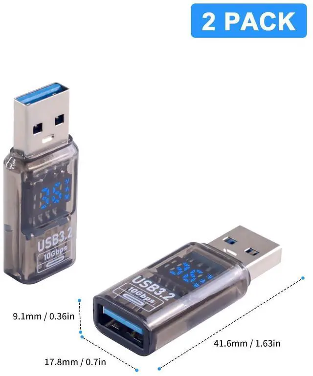 1, USB A Extension Adapter with LED Wattage Dispaly