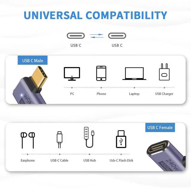 USB C Right Angle Adapter : This usb c 90 degree port is designed to make the cable have the suitable extension direction, it can can avoid wear and tear on your cables and devices' input ports and save space.