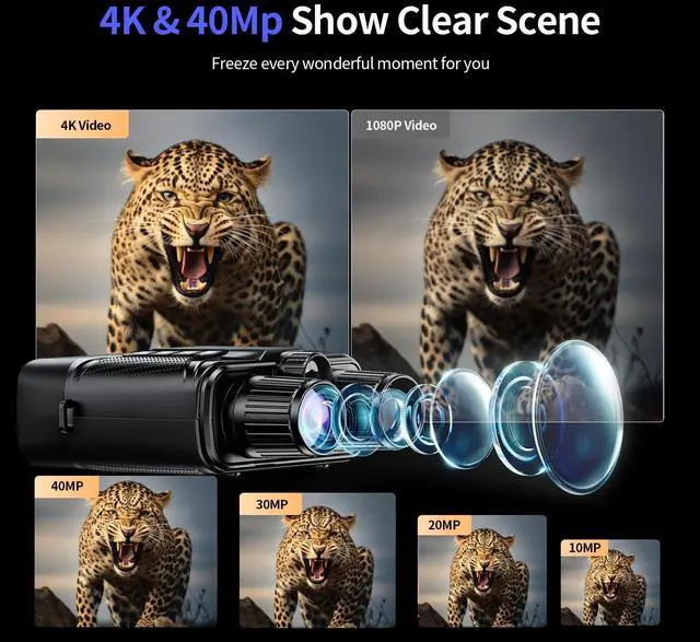 Image and Video Recording: The night vision binoculars with camera captures 40-megapixel photos and 4K HD videos; Nightvision goggles for adults also includes a microphone for audio recording, making it useful for documenting adventures in detail