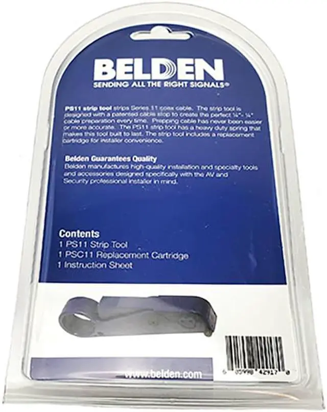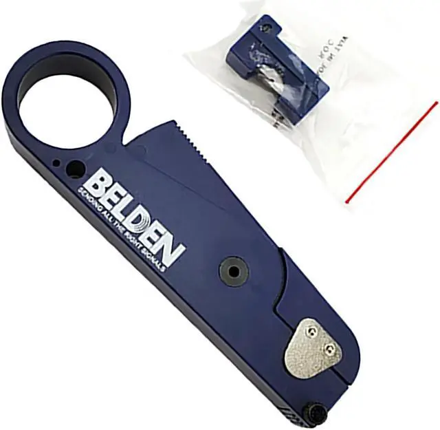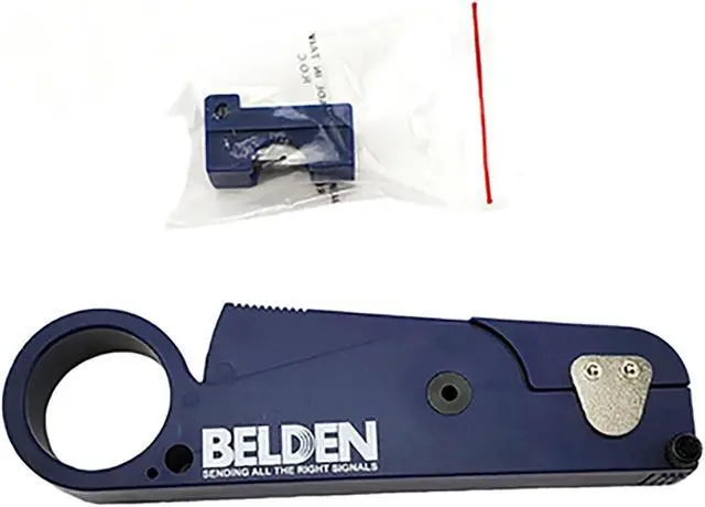 Patented cable stop for perfect 1/4”-1/4“ cable preparation. No screws, keys or other adjustment pieces to manage. Integrated rollers ensure the strip tool rolls around the cable to provide a clean, even cut. Extra replacement blade cartridge is included with every tool purchased.