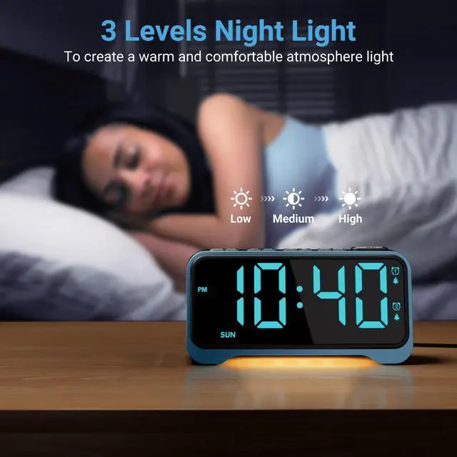 This RGB alarm clock features adjustable brightness for both the time display and night light. Dim it at bedtime to reduce glare and create a relaxing sleep environment, then brighten it in the morning for easy viewing. Perfect for any room, any time.