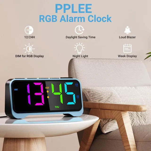 RGB Digital Alarm Clocks for Bedrooms With Night Light