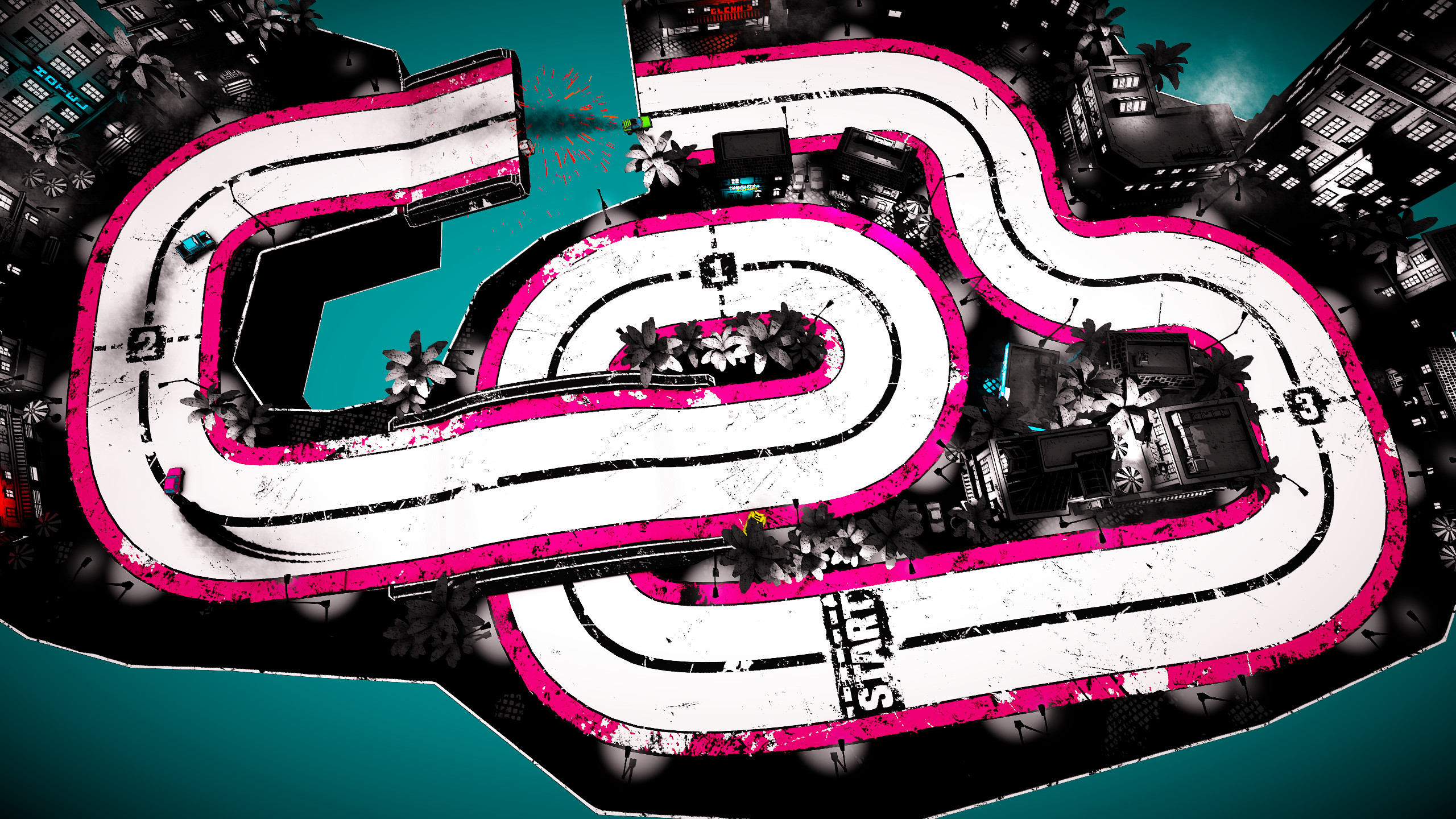 Surrender your senses to the ultimate top-down racing experience! Street Heat is an action-packed four-player party-piece enhanced by vibrant neon-noir visuals and a masterful ’80s soundtrack. Go bumper-to-bumper with three other racers as you screech around corners, hurtle over deadly jumps and floor it across busy train tracks in the race for the checkered flag.Pick your car and livery of choice and get racing against friends, strangers or AI within seconds. But beware: spin off the track’s edge or get obliterated by the trains and your race is over until the next round!